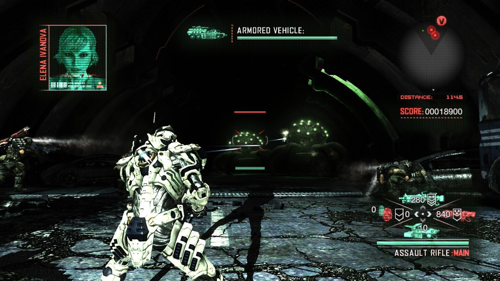 Костюм здесь представляет собой скорее оружие и средство передвижения, нежели броню. Игрок катается по полю на пятой точке (прямо как в WarFace) с реактивной тягой или перекатами, если спалить движок. Крайне не рекомендуется ходить в рукопашный бой — тратится энергия и теряется эффективность. Куда лучше выполнить пинок с подката: герой сделает затяжное заднее сальто, в результате чего откроется хорошая точка обстрела вражеской силы. Да, можно использовать укрытия и позиции обстрела, как в Gears of War, но результат будет довольно скучен. Скорее всего, вас выкурят с насиженного места, если, конечно, вы не врубили уровень сложности “Casual”.