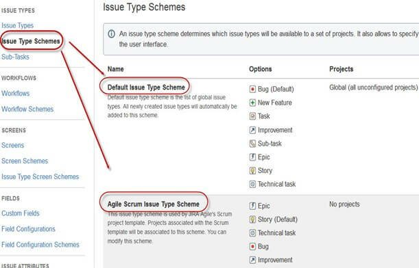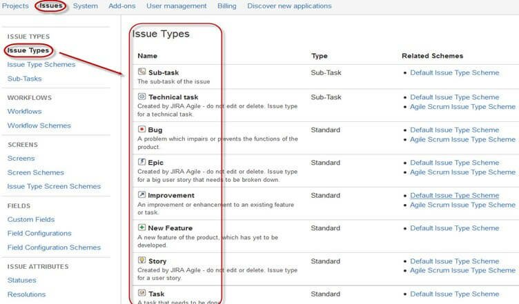 В JIRA есть две системы организации типов задач.