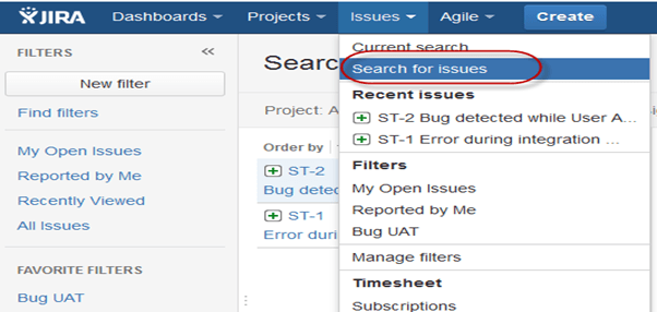 Теперь, если вы захотите отредактировать задачу или экспортировать ее в виде XML/Word документа, вы можете навести курсор на главную панель и кликнуть Задачи (Issues). В появившемся списке выберите Поиск задач (Search for issues), после чего откроется окно, с помощью которого вы можете обнаружить ваши задачи и выполнить другие действия.