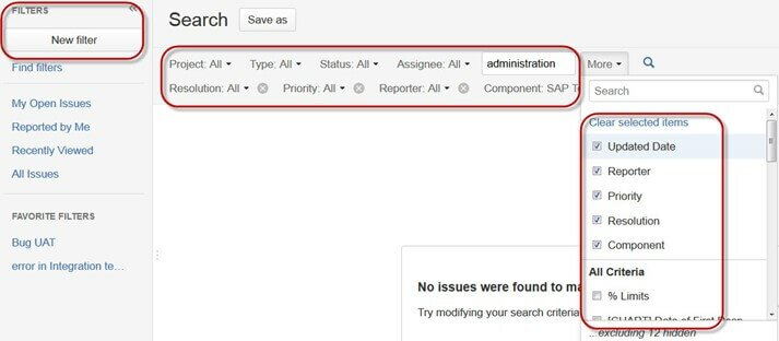Вы можете создавать свои фильтры в придачу к установленным по умолчанию. Фильтры могут быть по данным (date), компонентам (component), приоритетам (priority), решениям (resolution) и т.д.
