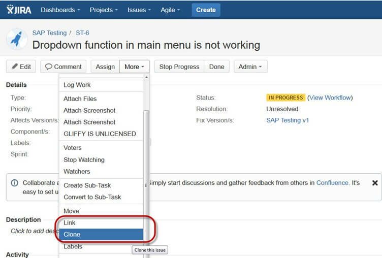 В JIRA вы также можете клонировать задачу. Преимущество этой функции в том, что над задачей сможет отдельно работать другая команда, позволяя решить задачу быстрее.